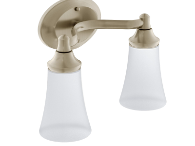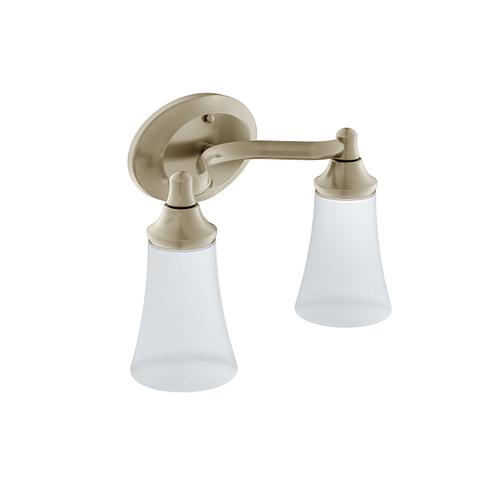 Moen®, YB2862BN, Bath Light, Eva® Collection, 120 V AC, Medium Lamp Base, 100 W Lamp, Glass/Zinc Housing Material, Brushed Nickel Housing Finish, 13.75 in W x 6.49 in D x 9.57 in H Dimensions, Import