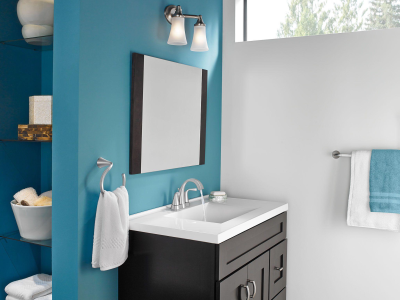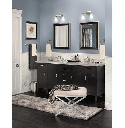 With flowing curves, the Eva collection's transitional design is pure and organic. Petal like handles and swan-like spout bring a relaxed feeling to the bath. Complete the look of a perfectly matched bath with an elegant and stylish lighting fixture.