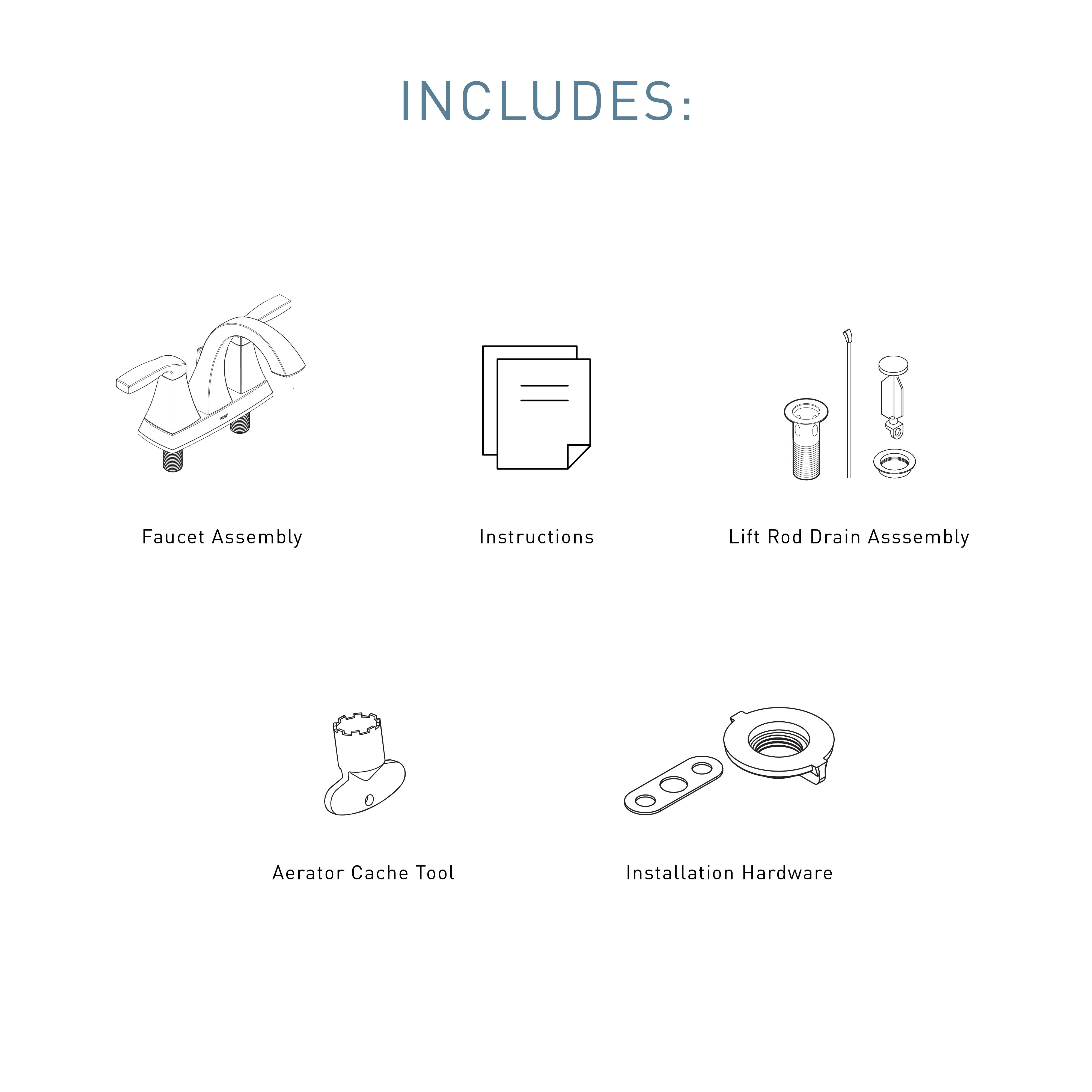 Moen®, 6901BG, Bathroom Faucet, Series: 6901, Voss™ Collection, 1.2 gpm Flow Rate, 4 in Center Distance, High-Arc Spout, 4-13/16 in Spout Reach, 4-13/16 in Spout Height, Lever Handle, 2 Handles, Lift Rod Drain, 3 Faucet Holes, 1/2 in Connection, IPS Connection, Spray Pattern: Aerator, 1-3/16 in Maximum Deck Thickness, Deck Mounting, 1224™ Cartridge, 8.13 in W x 5.38 in D x 6.13 in H Dimensions, Metal, Brushed Gold, Domestic, Commercial Commercial/Residential