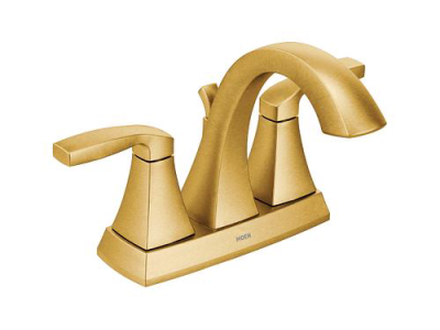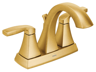 Boasting defined edges and understated elegance, the MOEN Voss 4 in. Centerset 2-Handle Bathroom Faucet features an ageless, yet fashion-forward presence that will illuminate your bathroom space. Offering a brushed gold finish that offers a elegant, sophisticated look, this 2-handle high-arc bathroom faucet will bring a confident transitional style that will complement any decor. A full line of coordinating Voss bath accessories are available to complete your look.