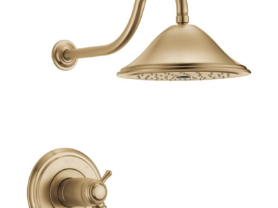 With separate handles for volume and temperature control, this Delta tub/shower provides a more refined showering experience. Simply set the water at your preferred temperature and turn the shower on or off with the volume control handle - without interrupting your set temperature. Designed to look like new for life, Brilliance® finishes are developed using a proprietary process that creates a durable, long-lasting finish that is guaranteed not to corrode, tarnish or discolor. While other products may gather unsightly mineral build-up over time, Delta soft rubber Touch-Clean® spray holes allow any mineral residue to simply be wiped away for an instantly refreshed look – with no need for soaking or the aid of chemical cleaners. Delta® thermostatic valves use TempAssure® Technology to protect you and your family from sudden temperature changes. Take the chill out of contemporary with the eloquent warmth of Champagne Bronze™ in your bath. This vibrant, gold finish provides a vivid splash of contrast to your space for a look that's simultaneously modern and nimble, able to pair elegantly with traditional, transitional and contemporary décor.
