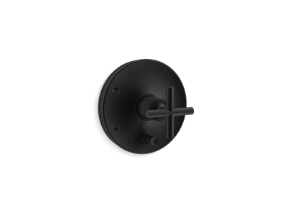 Kohler® Valve Trim, Purist® Rite-Temp®, Pushbutton Diverter Spout, 1 Handles, Cross, 6-1/2 in Dia Trim, Pressure Balanced Valve/Cartridge, Hand Shower Yes/No: No, Wall Mount, Metal, Matte Black, Commercial