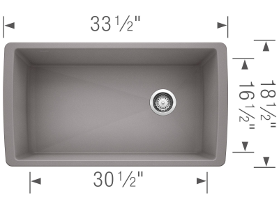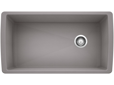 Blanco, 441770, Kitchen Sink, DIAMOND™ SILGRANIT® II Collection, Rectangle Shape, 30-1/2 in Bowl Length, 16-1/2 in Bowl Width, 9-1/2 in Bowl Depth, 3-1/2 in Drain Opening, 1 Bowls, 33-1/2 in L x 18-1/2 in W Overall, Undermount Mounting, Solid Granite, Metallic Gray
