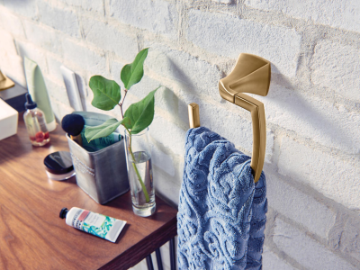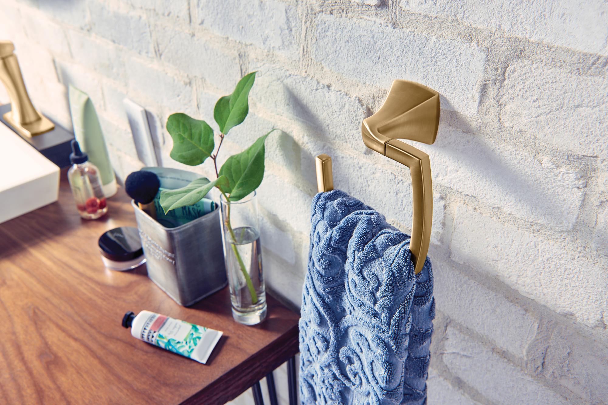 Moen®, YB5186BG, Towel Ring, Series: YB5186, Voss™ Collection, 6.4 in Overall Length, 2.8 in Overall Depth, 5.79 in Overall Height, Zinc, Brushed Gold, Import