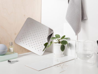 Design on the cutting edge. Moen’s razor-thin rainshower provides 12” diameter of luxurious waterfall. 2.5 gpm flow rate ensure a spa-like experience like none other. Self-cleaning nozzles prevent build-up.