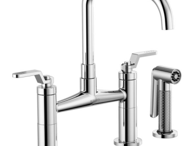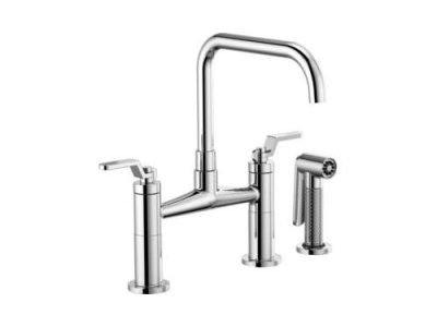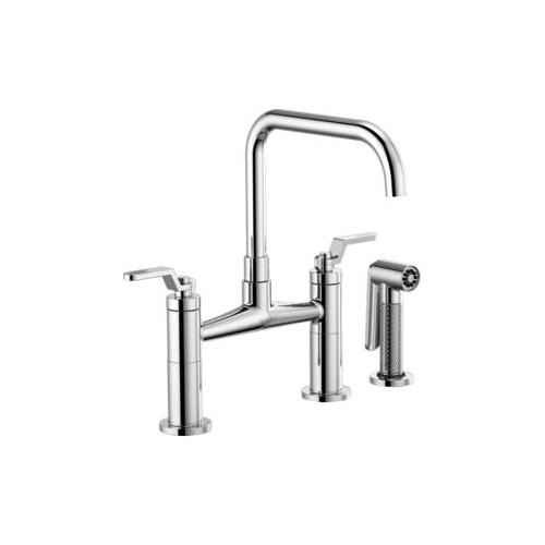 Brizo® 62554LF-PC Litze™ Widespread Bridge Kitchen Faucet With Matching Side Spray, 1.8 gpm Flow Rate, 8 in Center, Square Spout, Polished Chrome, 2 Handles, Domestic