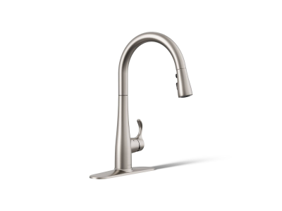 Kohler® Kitchen Sink Faucet, Touchless, Simplice® Collection, 1.5 gpm Flow Rate, Pull-Down Spout, 9 in Spout Reach, 9-3/8 in Spout Height, Lever Handle, 1 Handles, 3/8 in Connection, Compression Connection, 3 Spray Functions, 2-1/2 in Maximum Deck Thickness, Deck Mounting, Ceramic Disc, 9 in L x 8 in W x 16-9/16 in H, Metal, Vibrant® Stainless