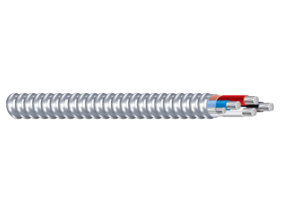 Southwire Armorlite® type MC cable - PVC jacketed is constructed with soft-drawn, copper type THHN/THWN conductors rated 90 deg C dry/ 75 deg C wet, a green insulated grounding conductor. The conductors are cabled together and a binder tape is wrapped around the assembly. Aluminum interlocking armor is applied over the assembly. A black sunlight resistant, flame retardant PVC jacket is applied over the armor. Print legend is included on the binder tape as well as the overall PVC jacket. The jacket is available in other colors upon request subject to economic order quantities.