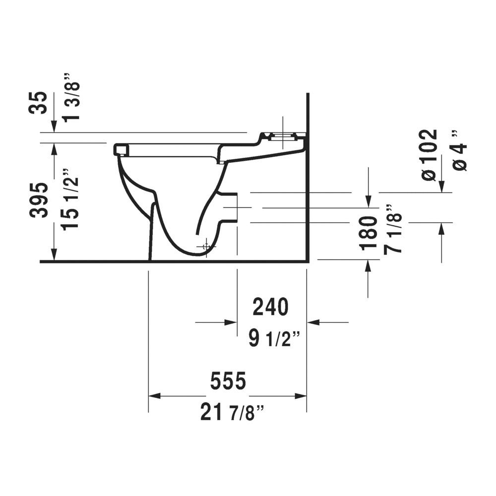 DURAVIT 0128090092 Starck 3 Dual Flush Close Coupled Toilet Bowl, White, Elongated Shape, 15-1/2 in H Rim