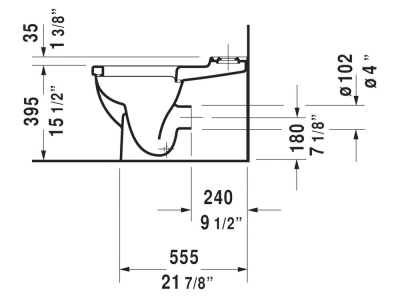 DURAVIT Toilet Bowl, Dual Flush Close Coupled, Series: 012809, Starck 3, 1.6/0.8 gpf Gallons per Flush, Elongated, 15-1/2 in Rim Height, Floor Mount, 16-7/8 in Height, 25-3/4 in Width, 14-5/8 in D, Ceramic, White, Import