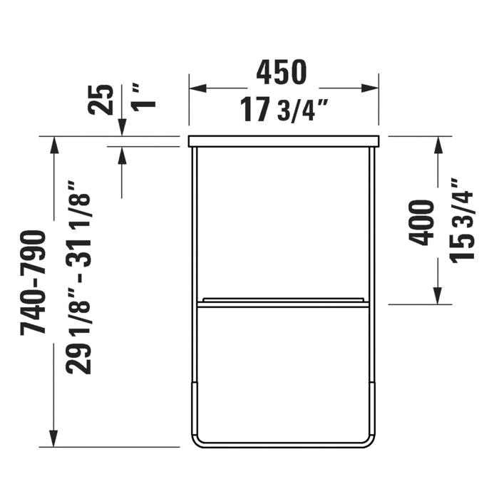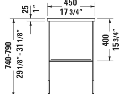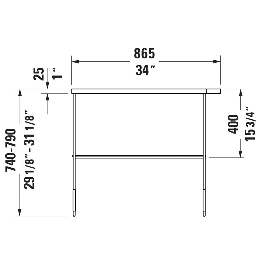 DURAVIT 0031114600 DuraSquare Height Adjustable Console, 17-7/8 in L x 34-1/8 in W, Floor Mount, Import