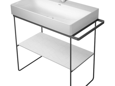 New metal consoles add the finishing touch to the DuraSquare range. Available in modern matt black or chrome, they lighten the appearance with a cool finish. Especially flexible, as height-adjustable and with an optional towel holder on the right or left. Whether floor-standing or wall-mounted, the practical glass shelf creates even more storage space. The range of different colors can be used to add an individual touch.