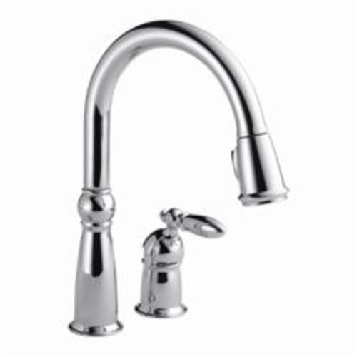 DELTA® 955-DST Victorian® Pull-Down Kitchen Faucet, 1.8 gpm Flow Rate, Polished Chrome, 1 Handles, 2 Faucet Holes, Function: Traditional, Domestic