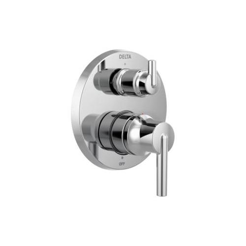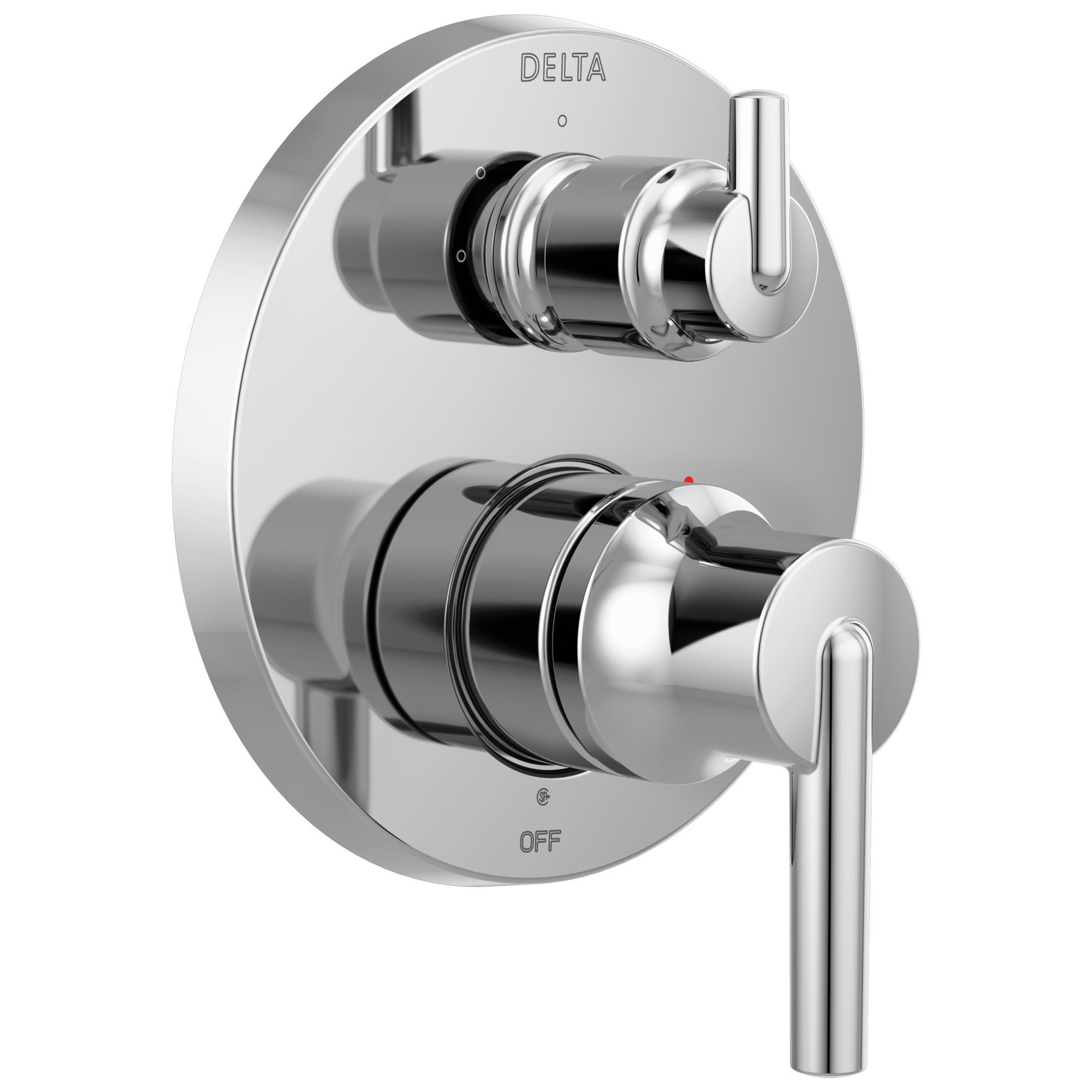 DELTA® Valve Trim, 3-Setting Contemporary, Series: Monitor® 14, Trinsic® Collection, Integrated Diverter Spout, 2 Handles, Lever Handle, 6-5/8 in Dia Trim, 1222 Pressure Balanced, For Use With: MultiChoice® R22000 Series Universal Rough-In Valve Body, Polished Chrome