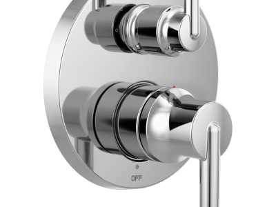 The Delta® MultiChoice® Integrated Shower Diverter consolidates custom shower design with its consumer-preferred streamlined style eliminating the need for an additional diverter valve. The contemporary round style is a smooth take on modern geometrics, offering a fresh look which can complement a wide range of decor. With three popular style choices to coordinate with any bathroom décor, it provides you the flexibility to select the type of custom shower functionality you prefer. With the MultiChoice® Universal system, you have the freedom to upgrade style and functionality later. And, because there’s no need to alter plumbing behind the wall, you save time, effort and money on future renovation updates.