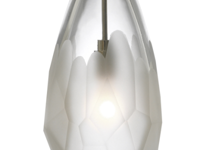 The Briolette pendant light by Sean Lavin features a classic teardrop shaped glass that has been hand finished with unique semi-opaque facets. The clustered facets create visual interest while subtly obscuring the light within making this fixture ideal for kitchen island task lighting, dining room lighting and bedroom lighting. For even greater design expression pair the Briolette pendant with a multi-port canopy for a uniquely designed chandelier. The Briolette is available in modern colors and on-trend finish options. Your choice of energy efficient LED, Xenon or halogen lamping ships in the box saving you time and money.