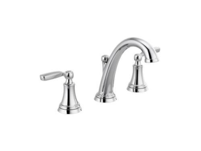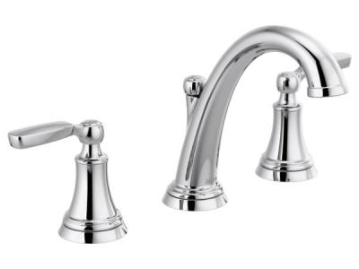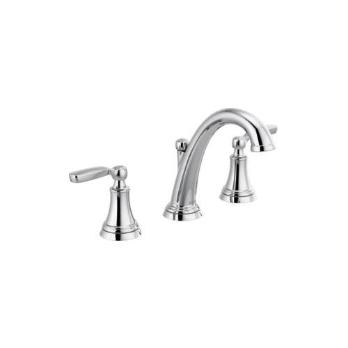 DELTA®, 3532LF-MPU, Widespread Bathroom Faucet, Series: 3532, Woodhurst™ Collection, 1.2 gpm Flow Rate, 4-1/2 to 16 in Center Distance, Rigid Spout, 5-1/4 in Spout Reach, 4-7/16 in Spout Height, Lever Handle, 2 Handles, Metal Pop-Up Drain, 3 Faucet Holes, 1/2-14 Connection, NPSM Connection, 1-3/16 in Maximum Deck Thickness, Deck Mounting, 6 in H Dimensions, Polished Chrome, Import