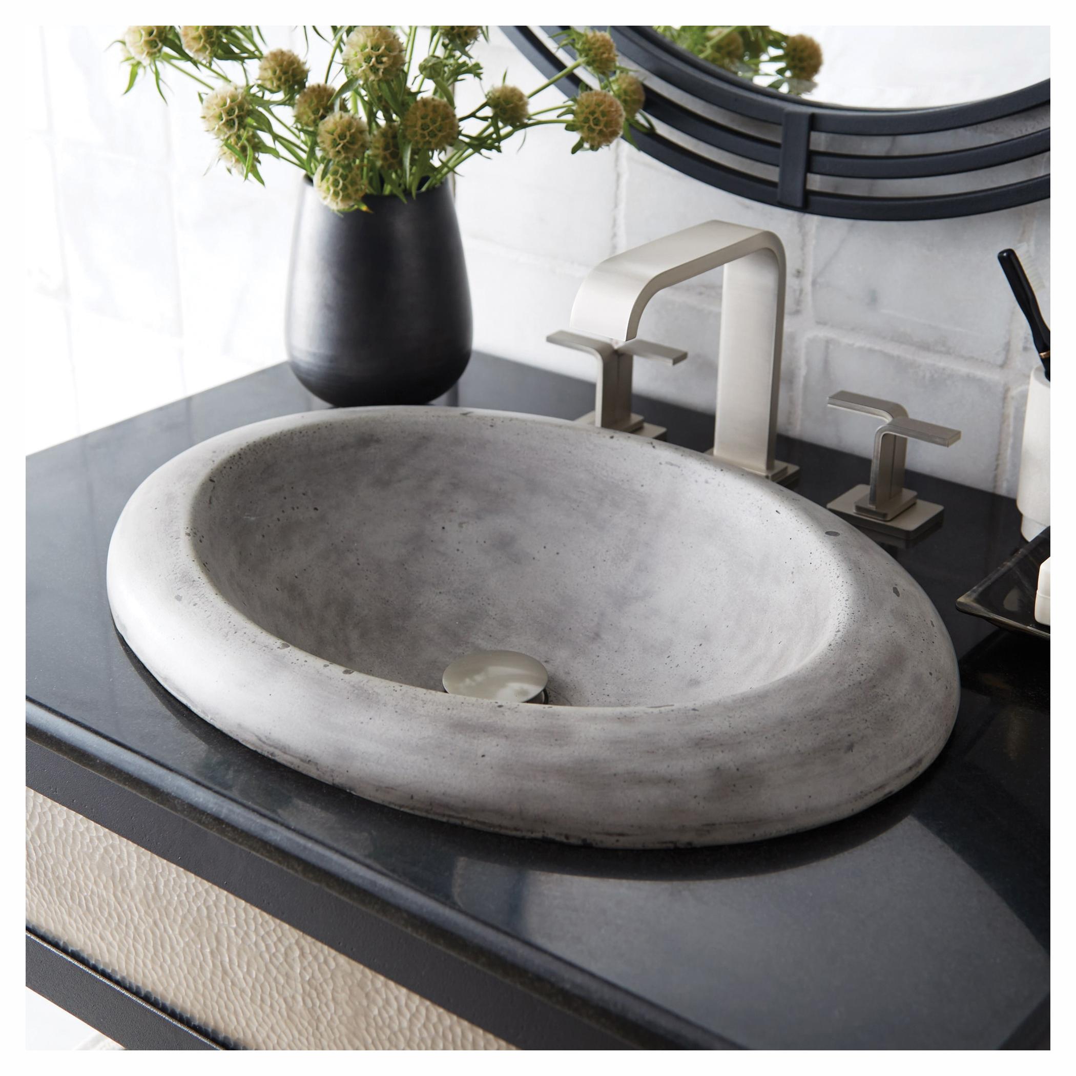 Native Trails, NSL2115-A, Bathroom Sink, NativeStone® Cuyama Collection, Oval Shape, 16 in L x 12 in W x 4-1/4 in H Bowl, 1-1/2 in Drain Opening, 1 Basins, 21 in L x 15 in W x 5 in H Overall, Drop-In Mounting, Natural Jute Fiber/Concrete, Ash, ADA Compliance: Yes, Import