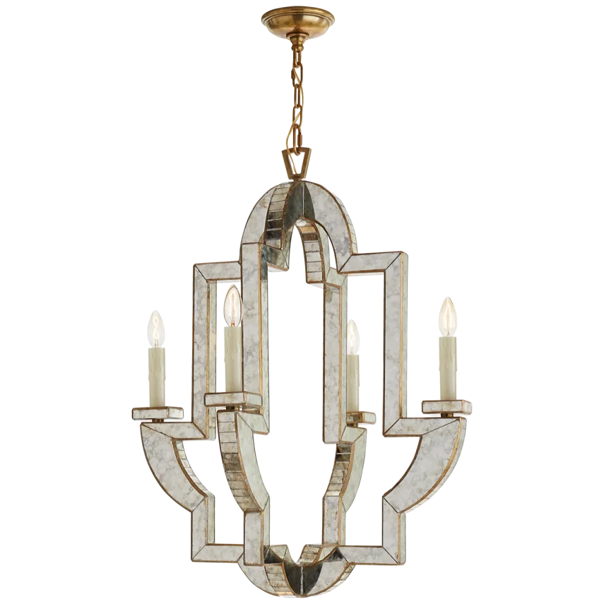 Lido Medium Chandelier in Antique Mirror and Hand-Rubbed Antique Brass