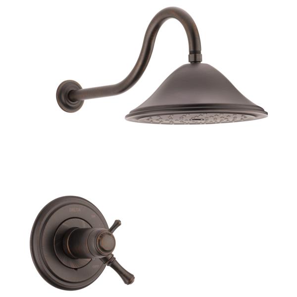 DELTA® Shower Trim, Series: TempAssure® 17T, Cassidy™ Collection, 2.5 gpm Shower Flow Rate, 2 Handles, Lever Handle, 7 in Dia Trim, Thermostatic Ceramic Cartridge, Hand Shower: No, Spray Pattern: Full, 80 psi Pressure, Wall Mounting, Solid Brass, Venetian Bronze, Commercial Commercial/Residential