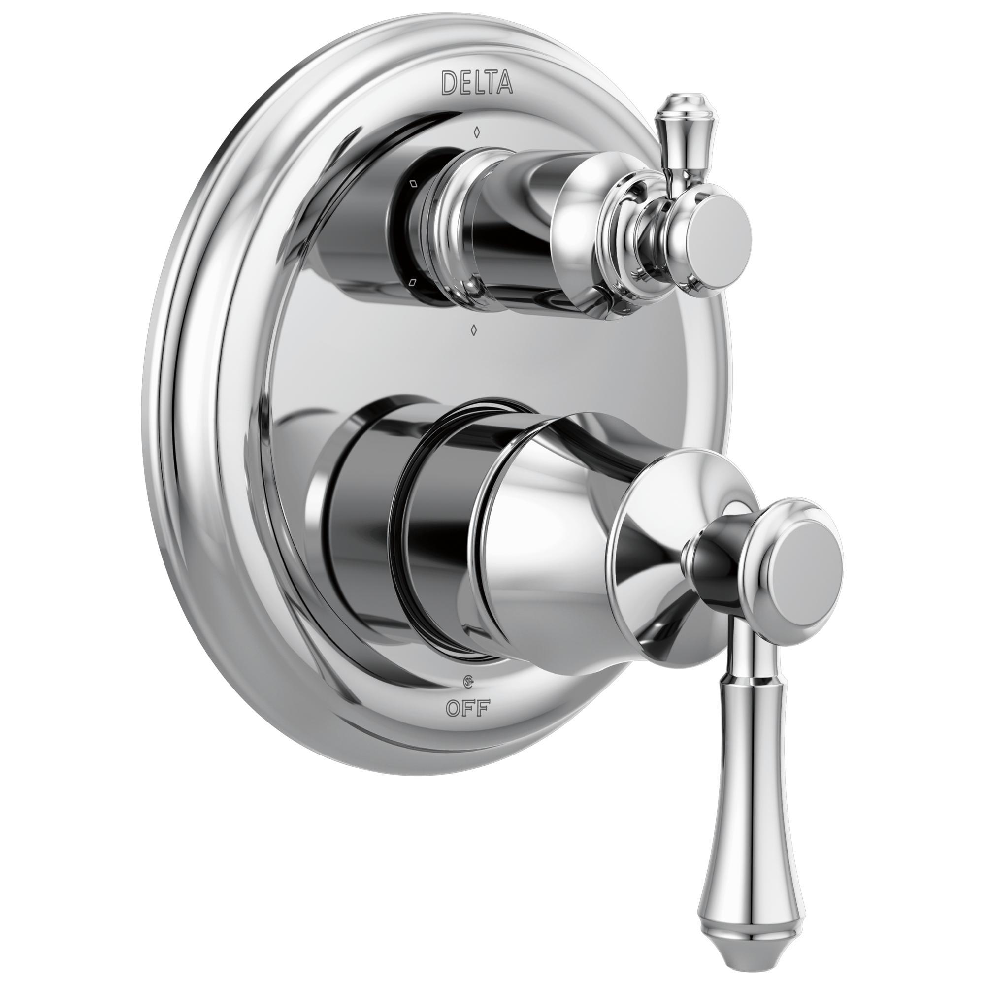 DELTA® Valve Trim, 6-Setting Traditional, Series: Monitor® 14, Cassidy™ Collection, Integrated Diverter Spout, 2 Handles, Lever Handle, 7 in Dia Trim, 1222 Pressure Balanced, For Use With: MultiChoice® R22000 Series Universal Rough-In Valve Body, Polished Chrome