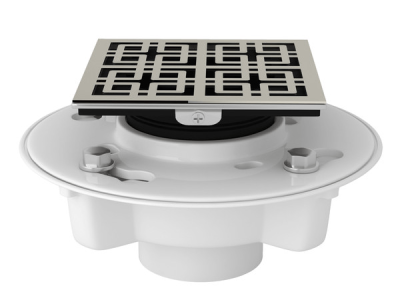- Throat assembly with hair strainer, tile-in-frame and mud guard