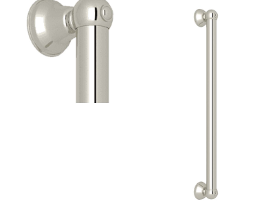 Perrin & Rowe, 1251PN, Decorative Grab Palladian, Rohl Cross Collection, 1-3/8 in Diameter, 24 in Length, 2-1/2 in Width, 3-1/4 in Height, Wall Mounting, Solid Brass, Polished Nickel, Import