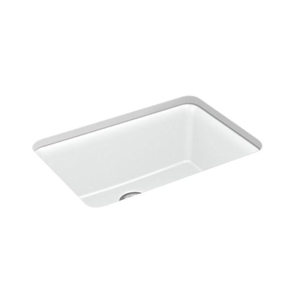 Kohler®, 28000-CM6, Kitchen Sink, Traditional, Series: 28000, Cairn® Collection, Rectangular Shape, 25-9/16 in Bowl Length, 16-3/8 in Bowl Width, 9-1/2 in Bowl Depth, 3-7/8 in Drain Opening, 1 Bowls, 27-1/2 in L x 18-5/16 in W x 10-3/16 in H Overall, Undermount Mounting, Neoroc® Composite, Matte White