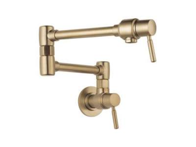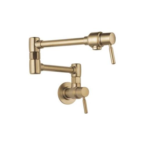 Brizo® Pot Filler Faucet, Euro, 4 gpm, Swivel Spout, 19-1/4 in Spout Reach, 6-1/2 in Spout Height, Lever, 2 Handles, No Side Spray(Y/N), 1 Faucet Holes, 1 in Faucet Hole, 1/2 in, IPS, Wall Mount, Ceramic Valve/Cartridge, Brass, Luxe Gold, Import
