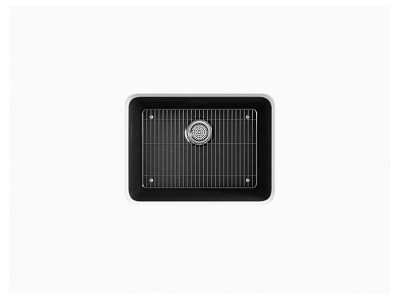 Kohler®, 28001-CM1, Kitchen Sink, Traditional, Series: 28001, Cairn® Collection, Rectangular Shape, 22-9/16 in Bowl Length, 16-3/8 in Bowl Width, 9-1/2 in Bowl Depth, 1 Bowls, 24-1/2 in L x 18-5/16 in W x 10-3/16 in H Overall, Undermount Mounting, Neoroc® Composite, Matte Black