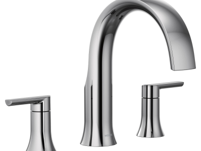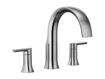 Moen®, TS983, Tub Faucet, Series: TS983, Doux™ Collection, 10 in Center Distance, High-Arc Spout, 8 in Spout Reach, 5-3/4 in Spout Height, Metal Lever Handle, 2 Handles, 3 Faucet Holes, 1/2 in Connection, CPVC x Crimp Ring PEX Connection, Function: Traditional, Hand Shower: No, 1/8 to 2-3/4 in Maximum Deck Thickness, Rough-In Deck Mounting, 6.19 in W x 4.94 in D x 8 in H Dimensions, Chrome, Domestic