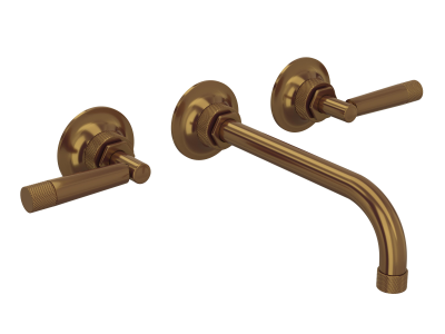 Rohl®, MB2030LMFBTO-2, Bathroom Faucet, Transitional, Graceline Collection, 1.2 gpm Flow Rate, C Spout, 8-7/8 in Spout Reach, Lever Handle, 3 Faucet Holes, Function: Traditional, Wall Mounting, French Brass