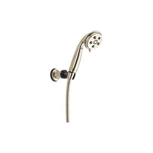 DELTA® Wall Mount Hand Shower, 3 in Shower Head Diameter, 3-Function Shower Head Patterns, 1.75 gpm Flow Rate, 60 in Hose Length, H2Okinetic®/Massage/Pause Spray, Slide Bar Holder, 80 psi Pressure, 1/2 in Connection, Metal Hose, Brass, Polished Nickel, 4 in D x 9-5/16 in H Dimensions, Import