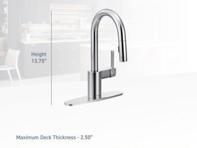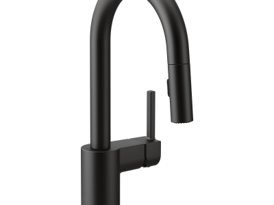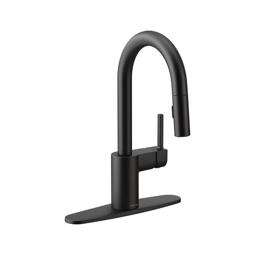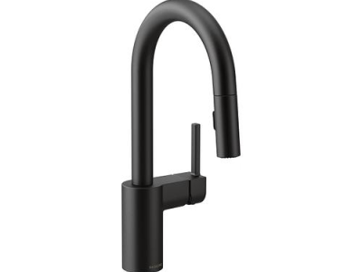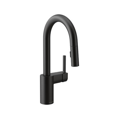 Moen®, 5965BL, Bar Faucet, Pull-Down, Series: 5965, Align™ Collection, 1.5 gpm Flow Rate, High-Arc Spout, 6-3/4 in Spout Reach, 6-7/8 in Spout Height, 68 in L Hose, Lever Handle, 1 Handles, 1 Faucet Holes, 1-1/2 in Faucet Hole, 3/8 in Connection, Compression Connection, Spray Pattern: Aerated Stream, 2 Spray Functions, 2-1/2 in Maximum Deck Thickness, Deck Mounting, 12-1/4 in W x 3-1/2 in D x 24-3/4 in H Dimensions, Metal, Matte Black, Import