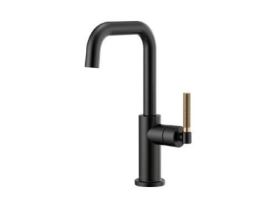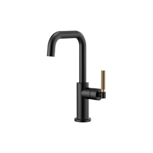 Brizo® Bar Faucet, Litze™ Collection, 1.8 gpm Flow Rate, Square Spout, 5-7/8 in Spout Reach, 11-5/16 in Spout Height, Knurled Lever Handle, 1 Handles, 1 Faucet Holes, 1-1/8 to 1-1/2 in Faucet Hole, 1/2-14 Connection, NPSM Connection, 3 in Maximum Deck Thickness, Deck Mounting, Ceramic Disc, Solid Brass, Matte Black/luxe Gold, Import