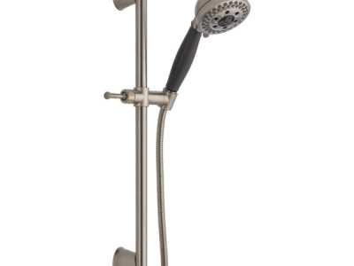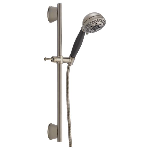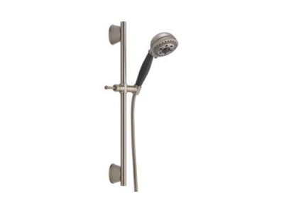 DELTA® Hand Shower, Ashlyn® Collection, 4-1/8 in Shower Head Diameter, 5-Function Shower Head Patterns, 1.75 gpm Flow Rate, 82 in Hose Length, Full Body/Pause/Full Body with Massage/Massage/H2OKinetic Spray, 80 psi Pressure, 1/2 in Connection, Metal Hose, Stainless Steel, 10-11/16 in H, With Slide Bar: Yes, Import