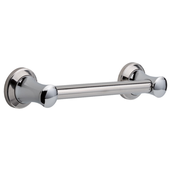 DELTA® Decorative Grab Bar, Transitional Oval, 1-1/4 in Diameter, 12 in Length, 3-3/8 in Width, 3 in Height, Wall Mounting, Polished Chrome, Import