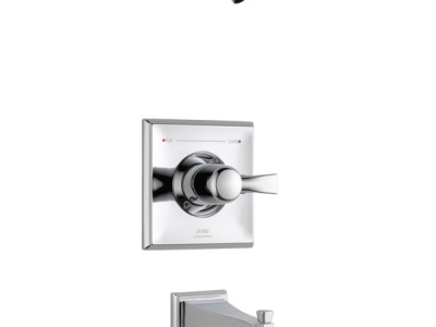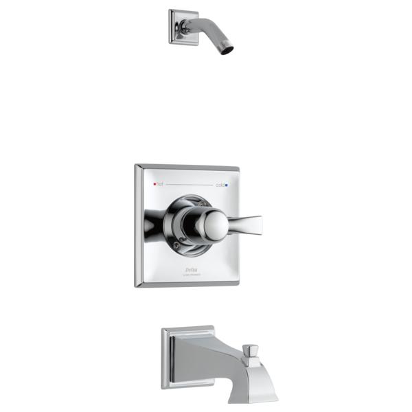 DELTA® Tub and Shower Trim, Series: Monitor® 14, Dryden™ Collection, Pull-Up Diverter Spout, 6-1/4 in Spout Reach, 1 Handles, Lever Handle, 7 in H Trim, 1222 Pressure Balanced, Hand Shower: No, 1 Spray Functions, 80 psi Pressure, Wall Mounting, For Use With: MultiChoice® R10000 Series Universal Rough-In Valve Body, Solid Brass, Polished Chrome, Domestic