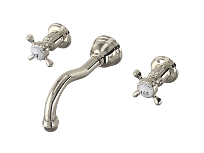 Perrin & Rowe, U.3791X-PN/TO-2, Bathroom Faucet, Edwardian Collection, 1.2 gpm Flow Rate, Wall Mounting, Nickel, Import