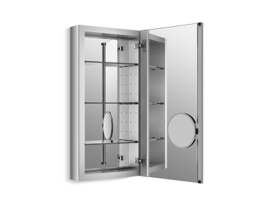 Kohler® 99001-SCF-NA Verdera® Mirrored Cabinet With Adjustable Flip-Out Flat Mirror, 15 in OAW x 30 in OAH, Anodized Aluminum