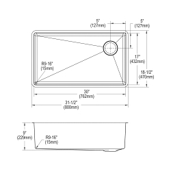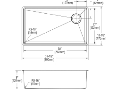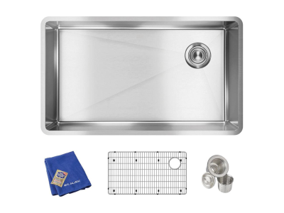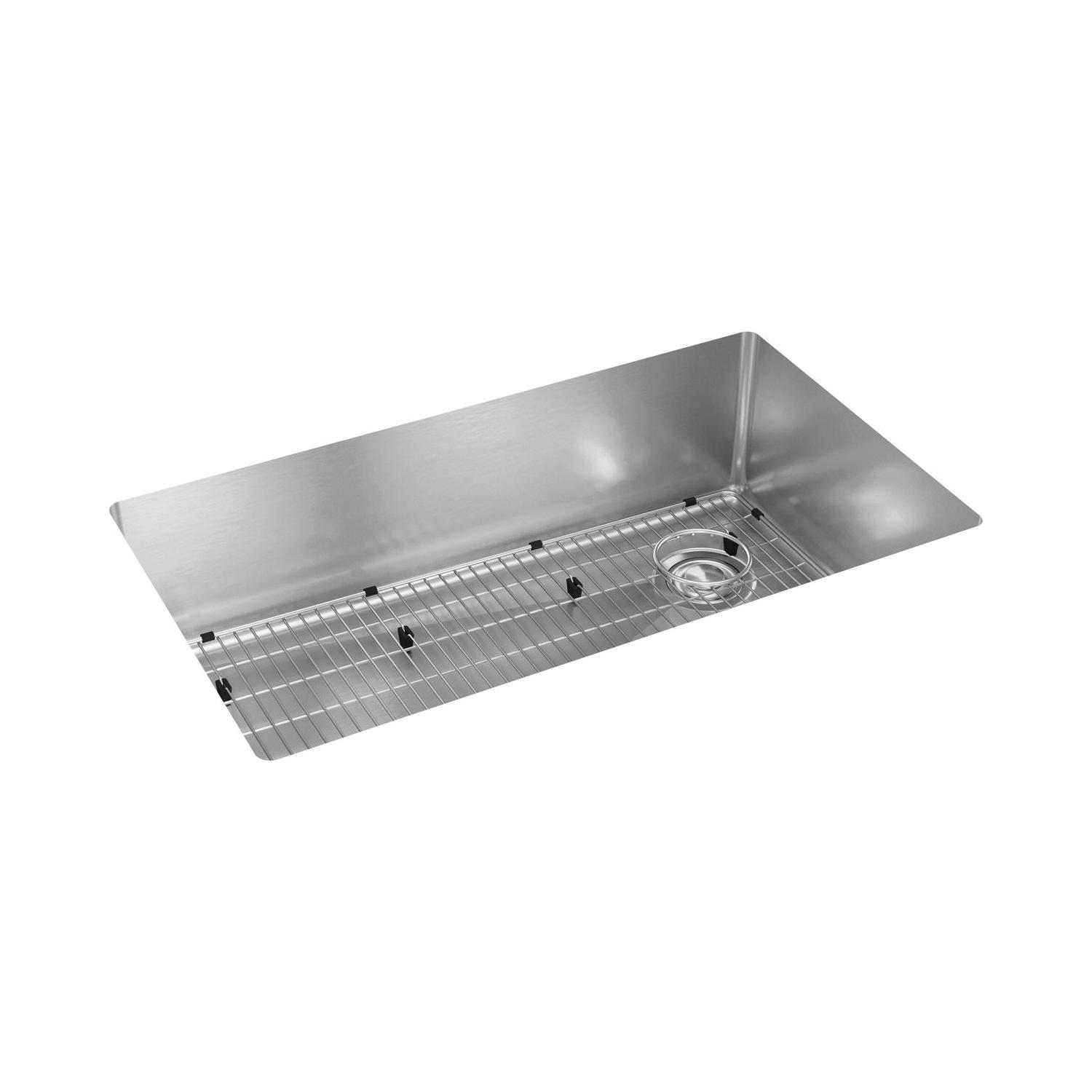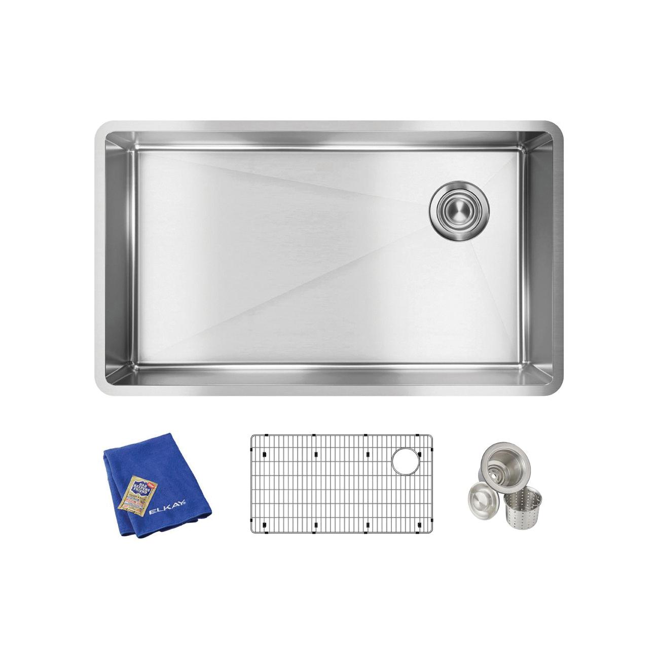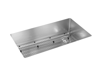 Elkay®, ECTRU30179RTC, Kitchen Sink Kit, Transitional, Crosstown® Collection, Rectangle Shape, 30 in Bowl Length, 17 in Bowl Width, 9 in Bowl Depth, 3-1/2 in Drain Opening, 1 Bowls, 31-1/2 in L x 18-1/2 in W x 9 in H Overall, Undermount Mounting, 18 ga 304 Stainless Steel, Polished Satin, Import