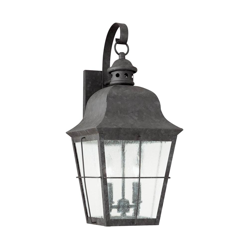 Chatham outdoor by Sea Gull Collection offers a timeless, traditional design with a classic window pane detailing over Frosted Seeded glass or Clear Seeded glass, and crowed with a cupola atop the dramatic mansard roofline.