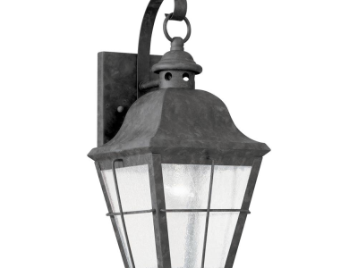 Chatham outdoor by Sea Gull Collection offers a timeless, traditional design with a classic window pane detailing over Frosted Seeded glass or Clear Seeded glass, and crowed with a cupola atop the dramatic mansard roofline.