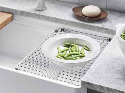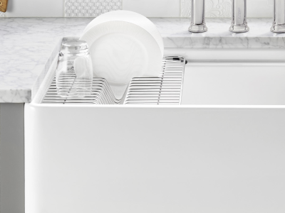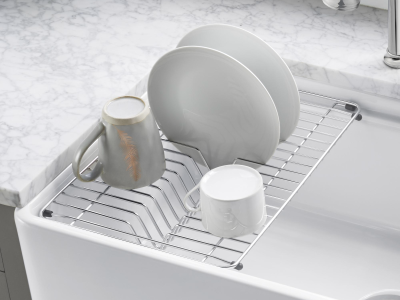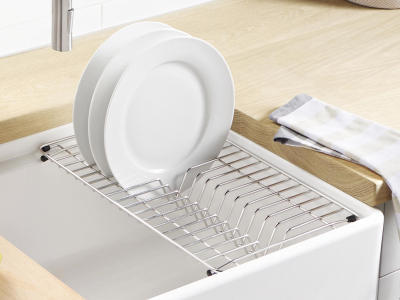 Safely stack and store your dishes during your cleaning session with the PROFINA STAINLESS STEEL DISH RACK. Designed to fit inside the sink ledge, this rack is perfect for keeping your dishes perfectly aligned while saving room for larger cookware. Save highly-coveted counterspace and organize your kitchen workspace in style by adding accessories to your kitchen workspace.