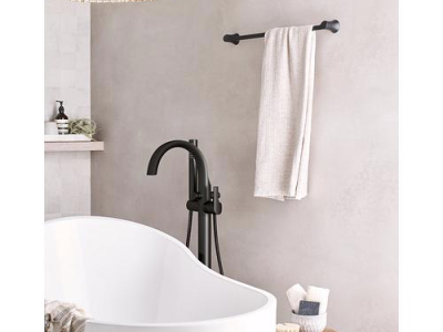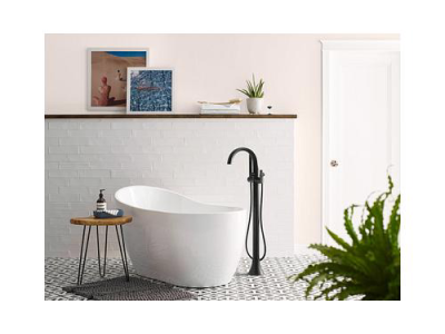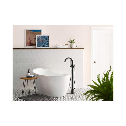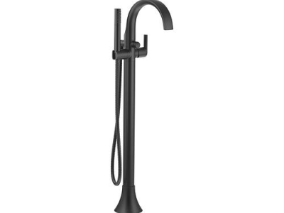 Moen®, S3105BL, Tub Filler Faucet, Floor Mount, Series: S3105, Doux™ Collection, 1.75 gpm Flow Rate, Fixed Spout, 9-3/4 in Spout Reach, 32-3/4 to 35-3/4 in Spout Height, 59 in Hose, Lever Handle, 1 Handles, 1 Faucet Holes, 1 Spray Functions, Hand Shower: Yes, 32-3/4 to 35-3/4 in H Dimensions, Metal, Matte Black, Domestic
