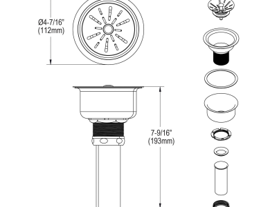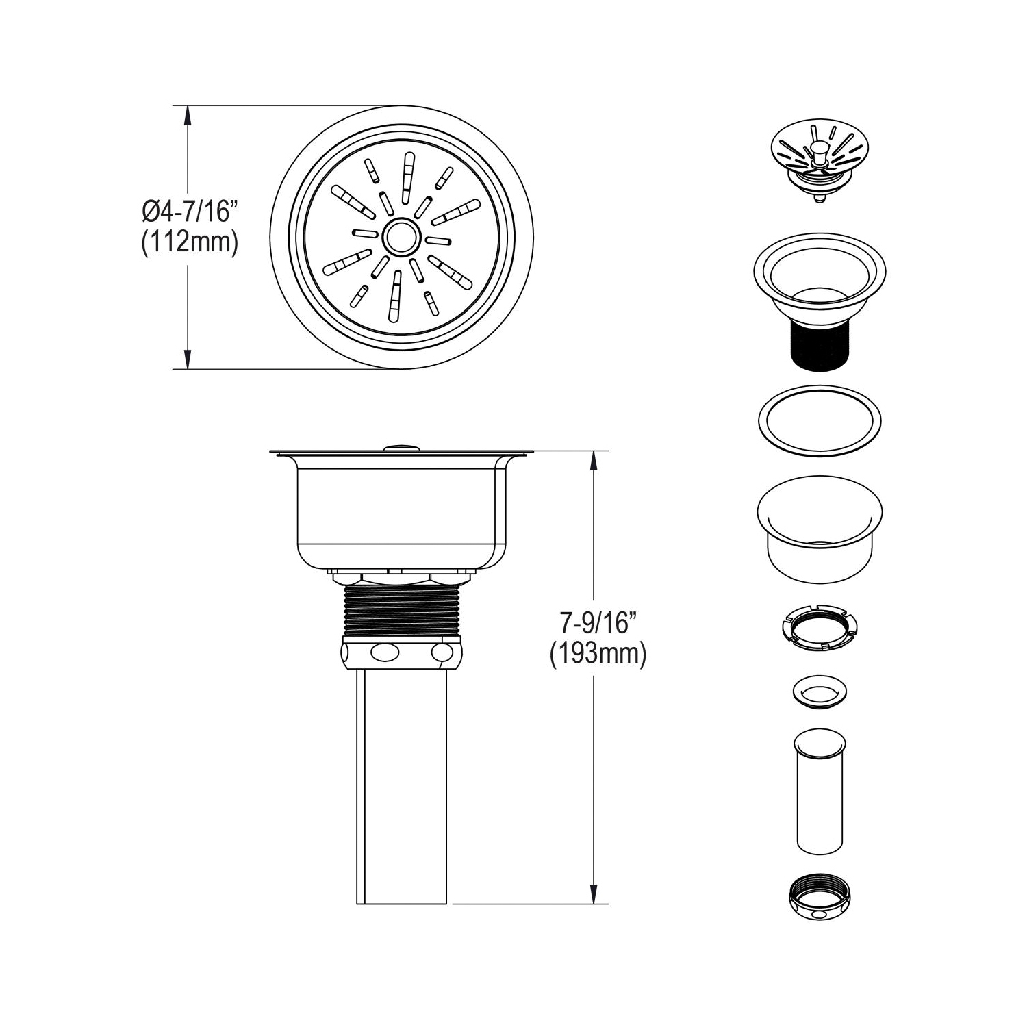Elkay® Drain Fitting, 3-1/2 in Nominal, 304 Stainless Steel Drain, Overflow Yes/No: No, Includes Lift Rod: No, Satin, 4-7/16 in L x 4-7/16 in W x 7-9/16 in H Dimensions, Import