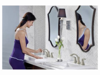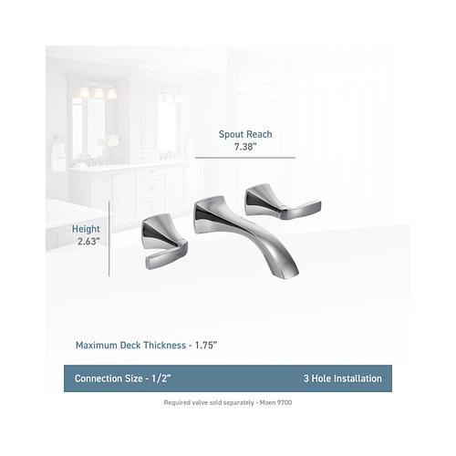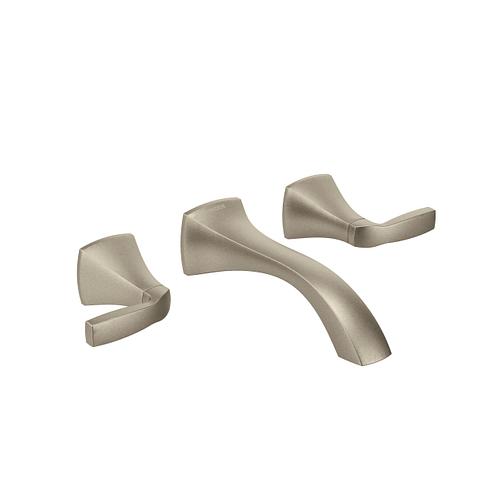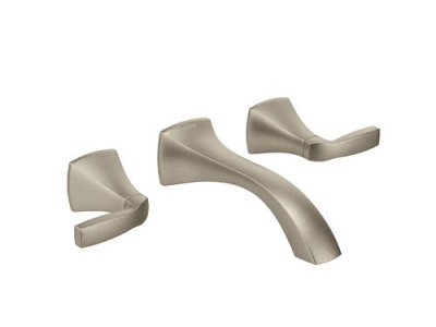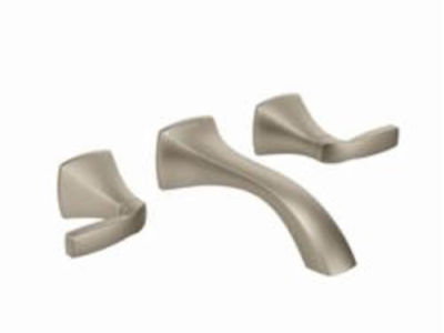 Crisp edges and uncomplicated style features give the Voss collection an ageless, yet fashion-forward, presence. Each silhouette brings a confident transitional style to the bath. This brushed nickel two-handle wall mount bathroom faucet was built to last by MOEN. Designed for use in your bath. This trim kit requires MOEN valve 9700 to complete installation.