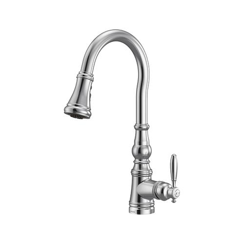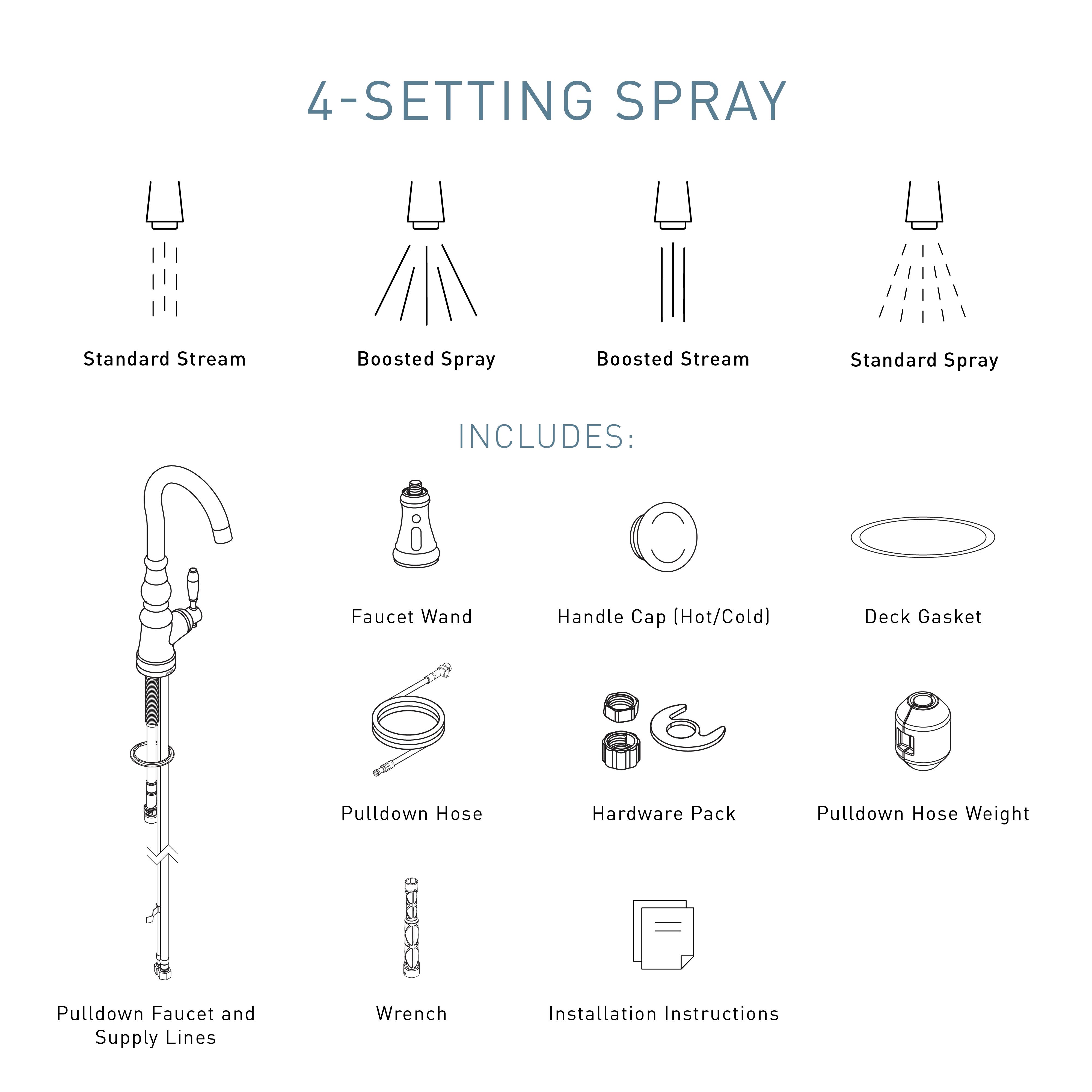 Weymouth's gracious design details and distinctive Victorian finishing touches present a sense of uncommon luxury for today's traditional kitchens. Signature styling elements include a decorative top finial and a refined shepherd's spout. Accents on the Weymouth Single-Handle Kitchen Faucet include porcelain inlays that feature Euro-influenced decorative script to create a vintage, eye-catching statement in your kitchen.