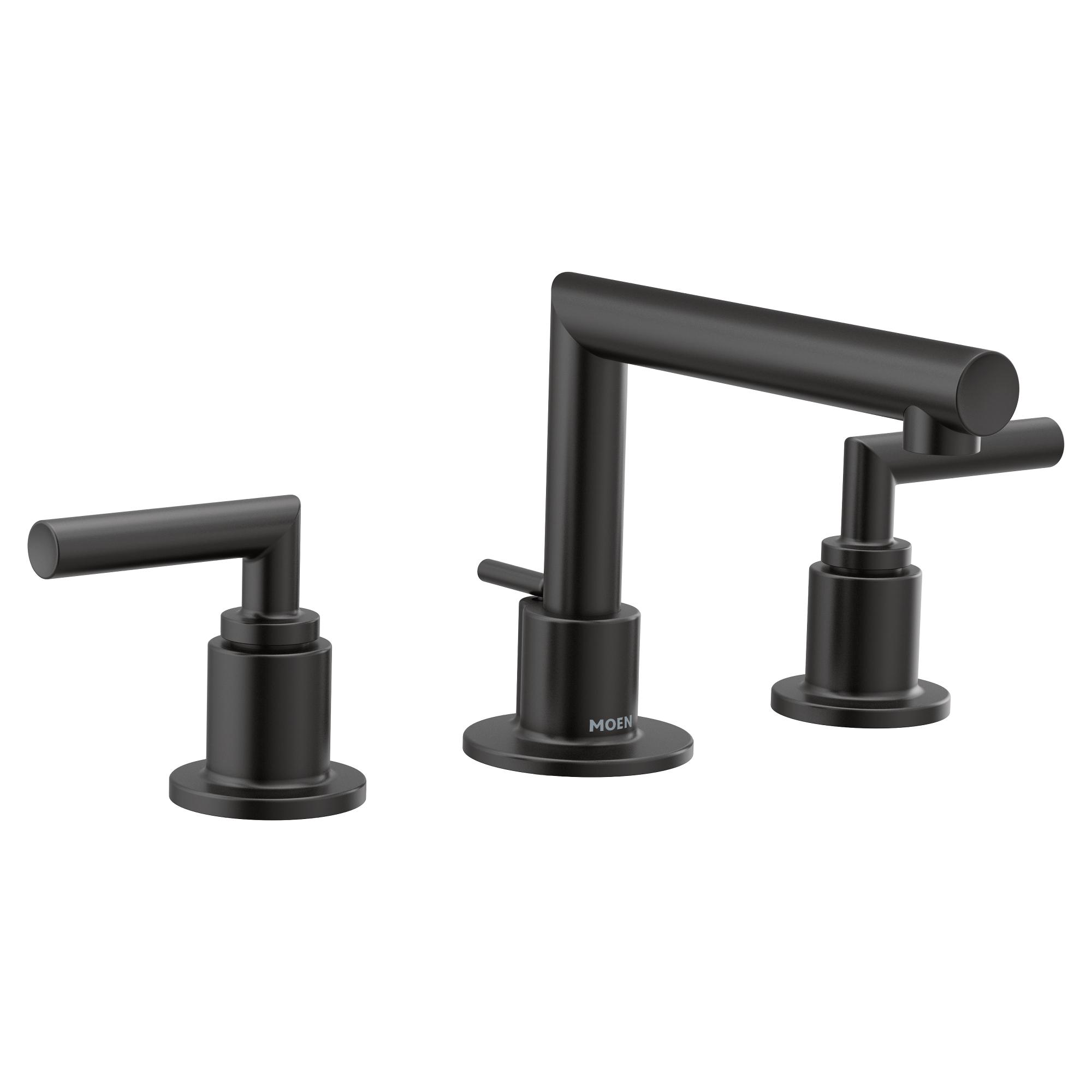 Moen® Bathroom Faucet, Widespread, Arris™ Collection, 1.2 gpm Flow Rate, 8 to 16 in Center Distance, Low Arc Spout, 5-1/2 in Spout Reach, 4-3/64 in Spout Height, Lever Handle, 2 Handles, Lift Rod Drain, 3 Faucet Holes, 1/2 in Connection, IPS Connection, Spray Pattern: Aerated Stream, 1-1/4 in Maximum Deck Thickness, Deck Mounting, 1234™ Duralast™ Cartridge, 5-5/64 in H Dimensions, Metal, Matte Black, Domestic, Commercial