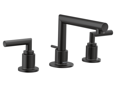 Moen® TS43002BL Widespread Bathroom Faucet, Arris™, Commercial, 1.2 gpm Flow Rate, 4-3/64 in H Spout, 8 to 16 in Center, Matte Black, 2 Handles, Lift Rod Drain, Domestic